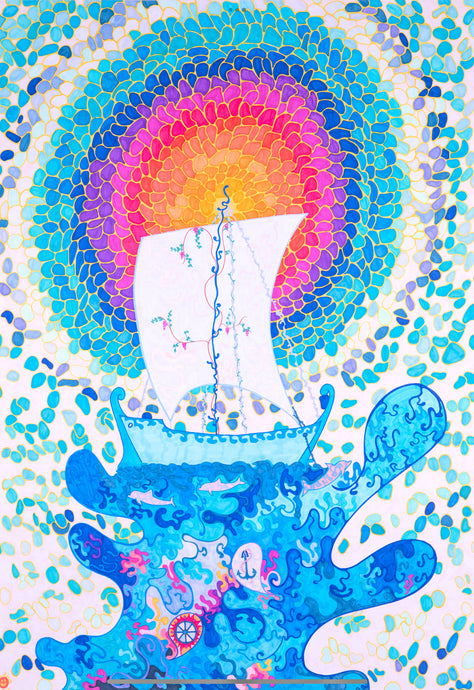 The colors in the latest work by Caroline Vyzas, who lives and works in Switzerland but often visits Greece, are truly enchanting.
