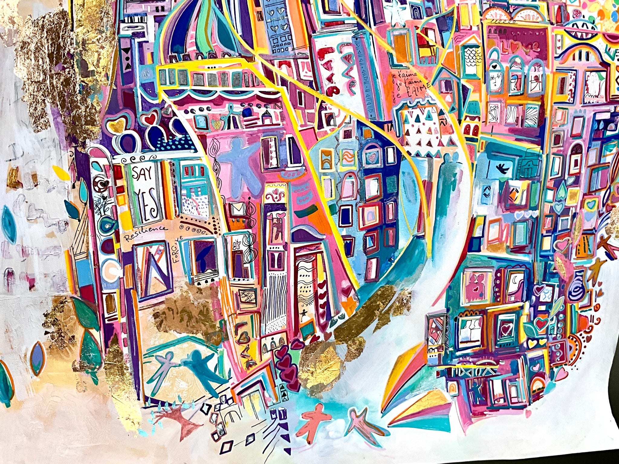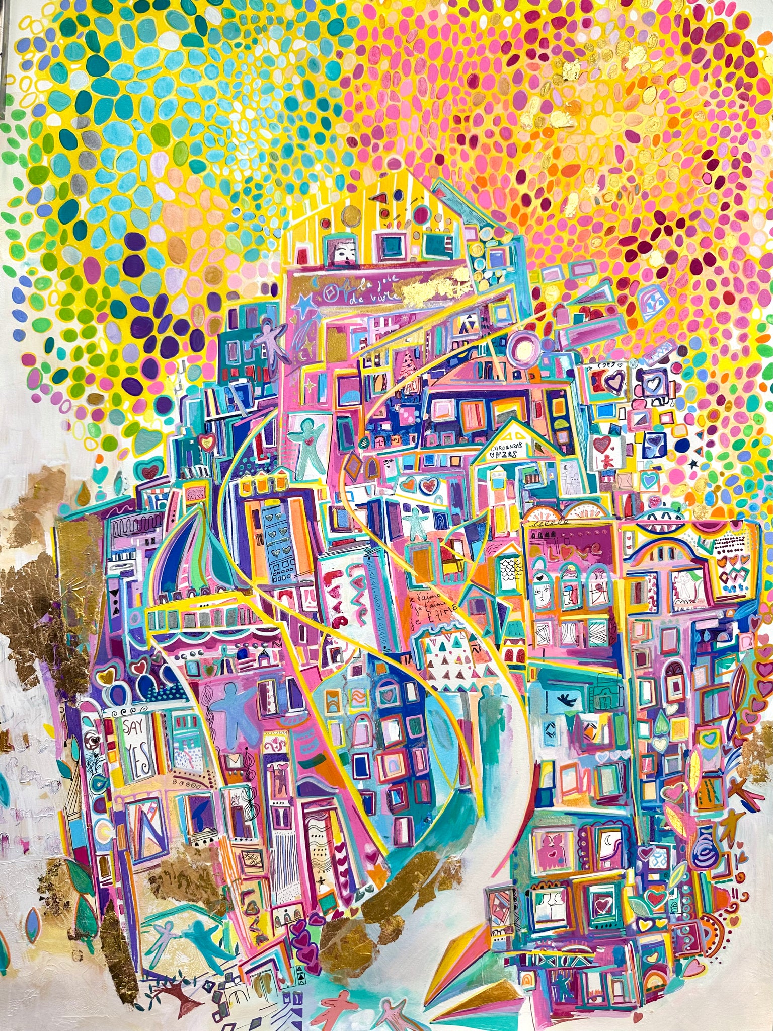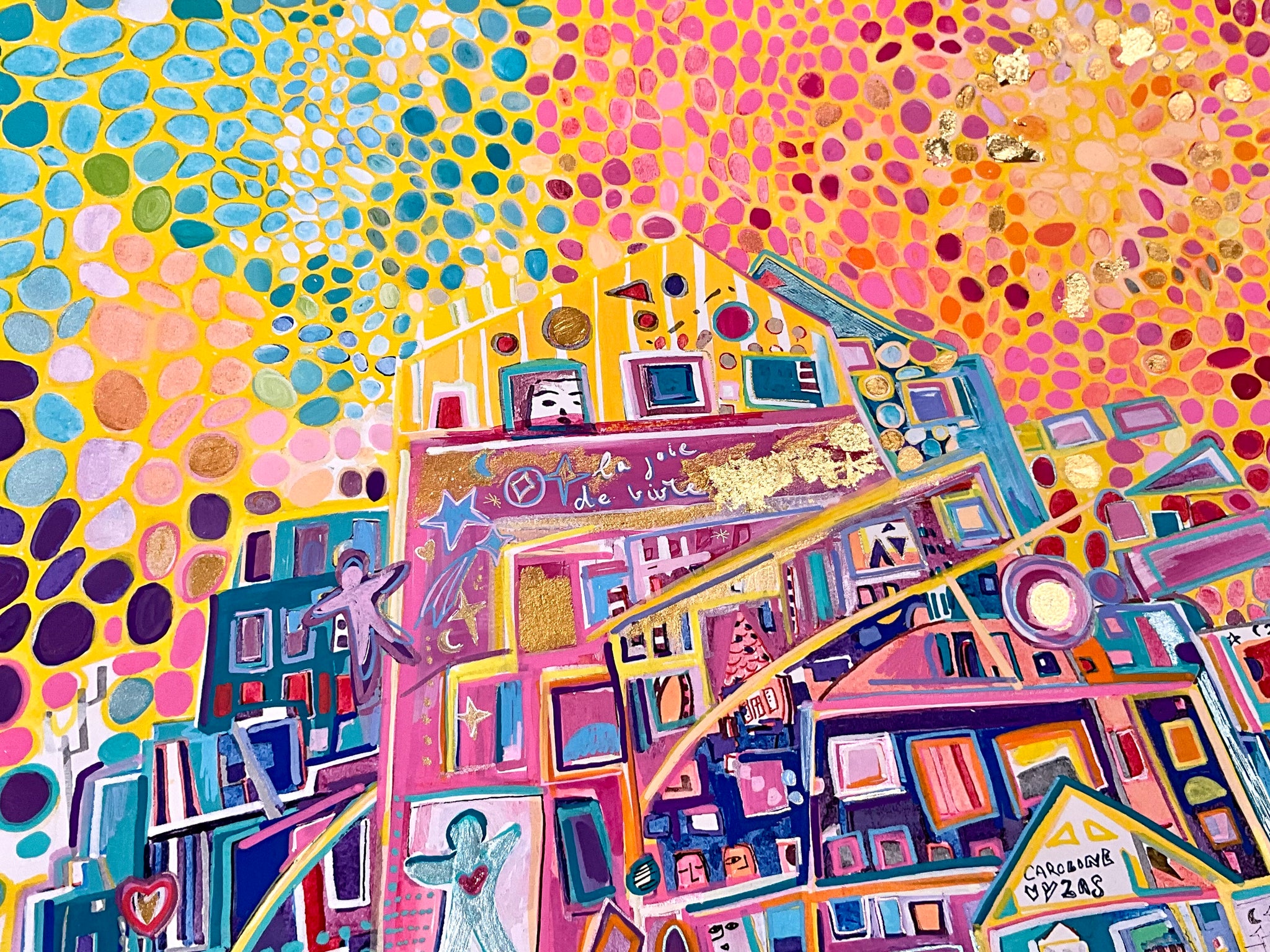 Mixed media, golden leaves 24 carats and acrylic painting. The whole painting has been repainted and re-interpreted, on a museum quality art print ✨it differs from the original.